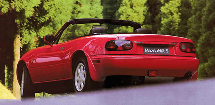 รถมาสด้า MX-5 รุ่นแรก มีน้ำหนักเพียง 955 กก. เป็นรถสปอร์ตที่มีน้ำหนักเบาอย่างไม่น่าเชื่อ วางเครื่องยนต์ที่ด้านหน้า ระบบขับเคลื่อนที่ล้อหลังให้สมรรถนะการขับขี่ที่ดีเยี่ยม เป็นการให้กำเนิดโรดสเตอร์ขึ้นอีกครั้ง รถมาสด้า MX-5 ให้ความสนุกสนานในการขับขี่อย่างมาก สร้างความภูมิใจที่ได้ครอบครอง จนกลายเป็นรถสปอร์ตโรดสเตอร์ที่ขายดีที่สุดในโลกโดยไม่มีใครเทียบได้